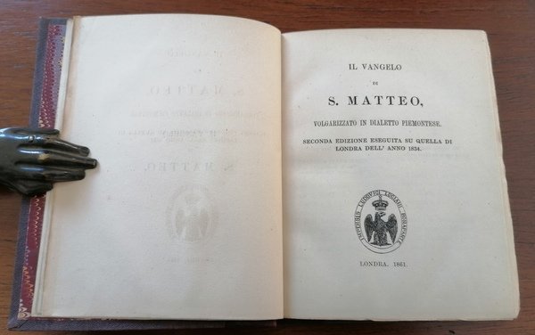 Il Vangelo di S. Matteo volgarizzato in dialetto piemontese. Seconda edizione eseguita su quella di Londra dell'anno 1834.