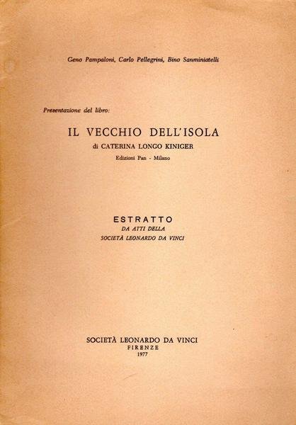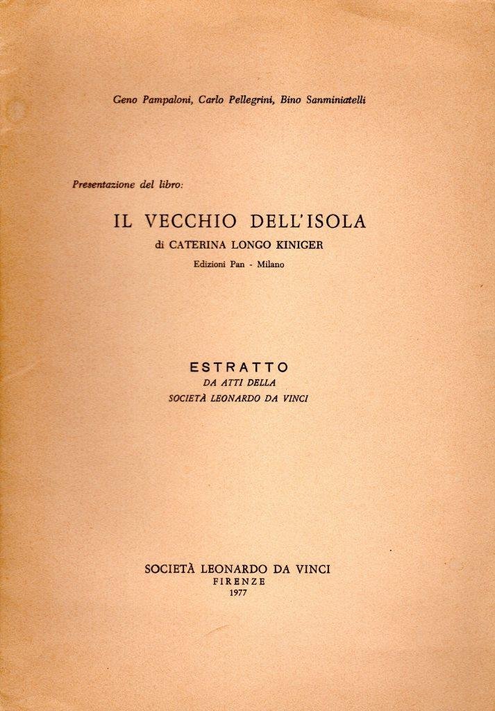 Il vecchio dell'isola, edizione del 1977, pp. 15, formato 17 x 24,5.<BR>Copertina morbida di colore beige con titoli in nero al piatto anteriore. Presentazione del libro "Il vecchio dell'Isola" di Caterina Longo Kiniger. <BR>Ottime condizioni.