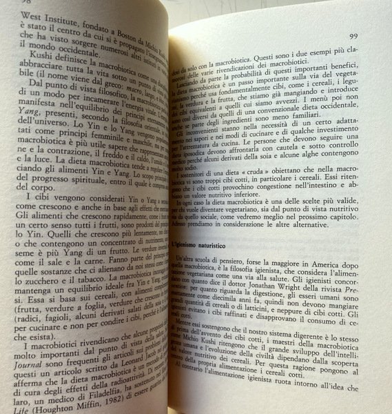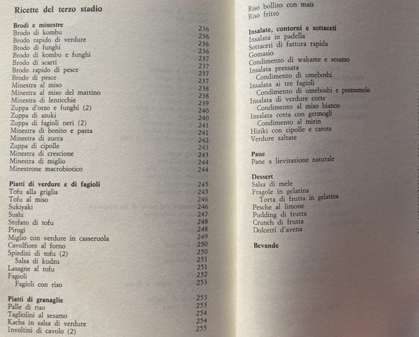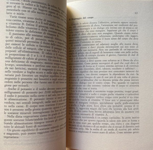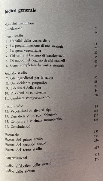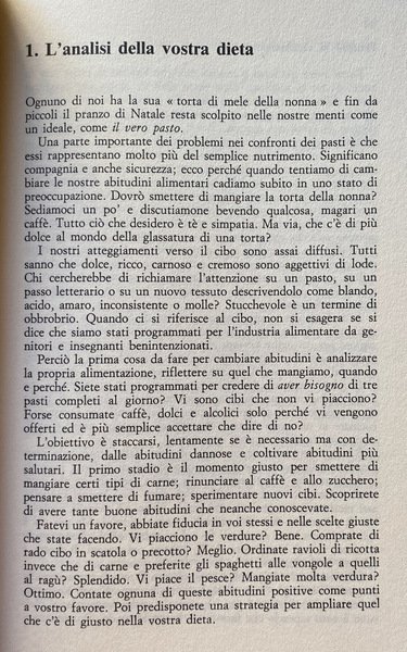 Un manuale che conduce l'utilizzatore all'alimentazione vegetariana integrale, attraverso un preciso programma suddiviso in tre stadi: il primo concede ancora pollame, pesce, uova e latticini; il secondo prevede che le proteine siano fornite dai cereali; il terzo conduce alla cucina macrobiotica.