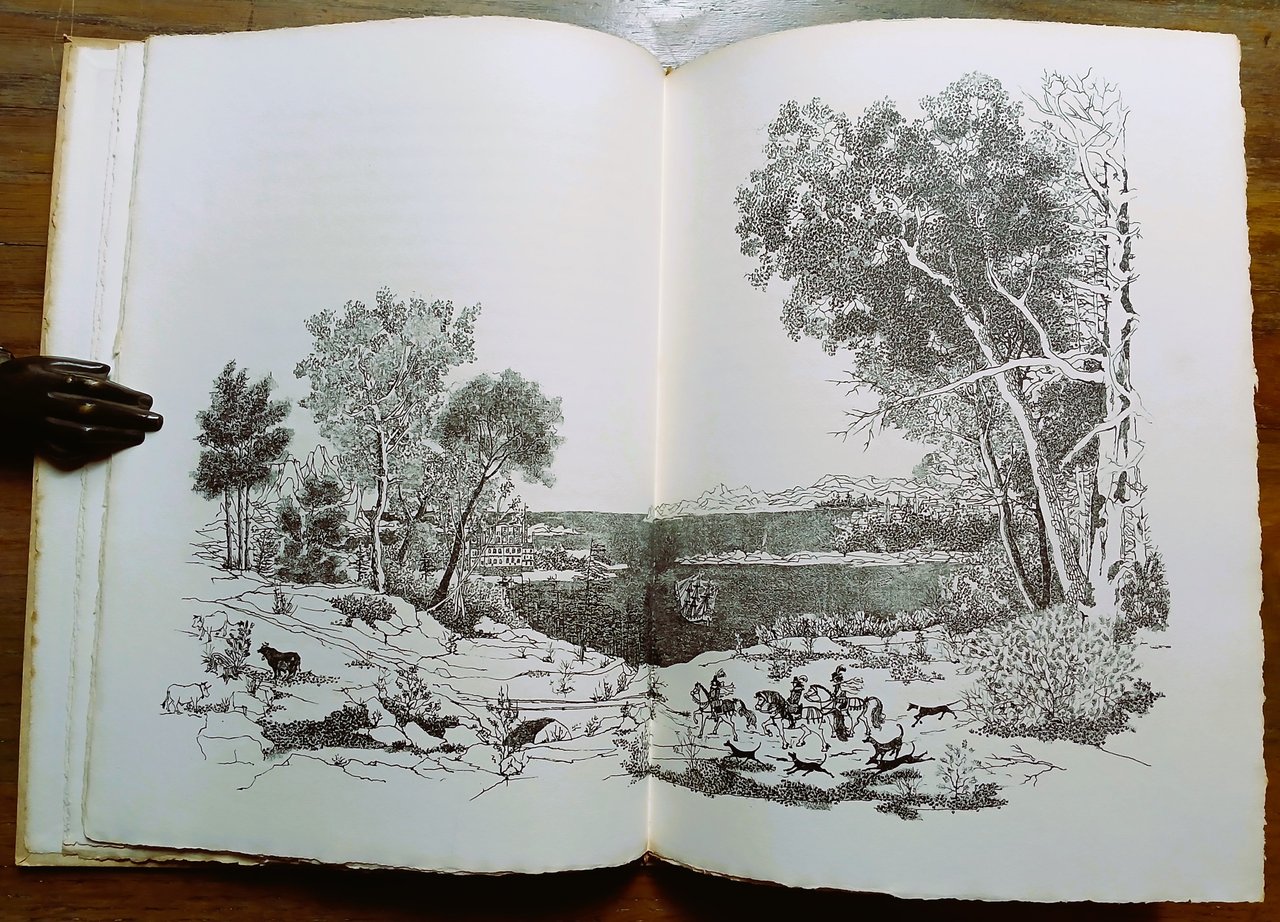 In 8° legatura editoriale in cartone rigido illustrato a colori, pp. 24,(2), con 5 figure a piena pagina ed una a doppia pagina nel testo disegnate ed incise sulla pietra litografica da Gabriele Santini, la copertina è decorata con una incisione di Renzo Pigrucci. Traduzione del testo a cura di Alda Manghi e Marcella Rinaldi. Volume stampato in 200 esemplari numerati, di cui 50 per omaggio, su carta "Umbria" delle Cartiere Miliani di Fabriano (es. n. 74). Ottimo stato di conservazione.