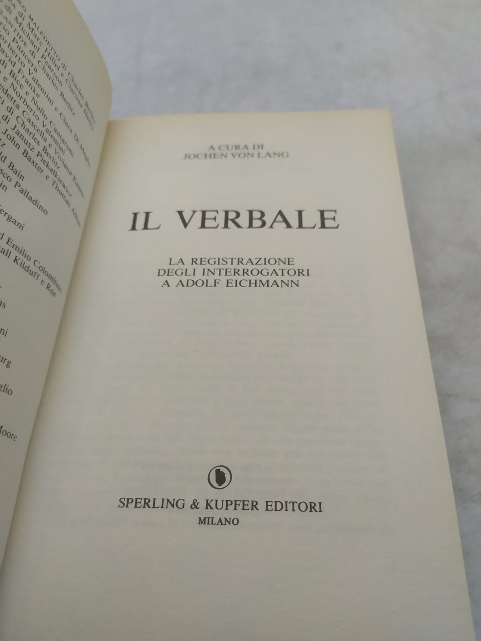il verbale la registrazione degli interrogatori a un imputato della storia adolf eichmann . , sperling & kupfer editori 1982 italiano, pp.334 ^^brossura