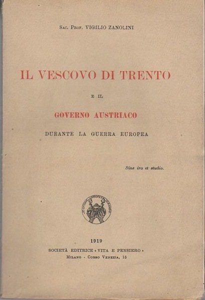 Il vescovo di Trento e il Governo austriaco durante la guerra europea.