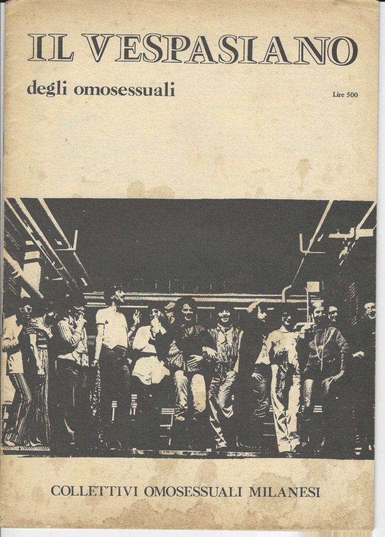 Numero unico di Vespasiano Degli Omosessuali, rivista uscita come supplemento a Re nudo nel 1976, prodotta a Milano dai Collettivi Omosessuali Milanesi.