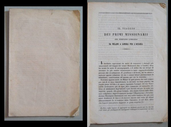 Il viaggio dei primi missionarii del seminario lombardo da Milano a Londra per l'Oceania. 1852