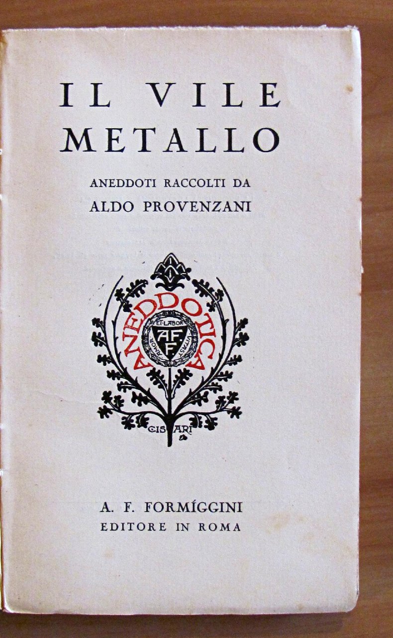 Collana Aneddotica IX. Fregio in copertina e al frontespizio di Cisari. Editore Formiggini - Roma, I edizione 1929. Brossura editoriale con ali. Lievissima imperfezione al dorso. 13,5x21; pp.144. Buonissimo stato.
