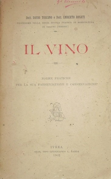 IL VINO Norme pratiche per la sua fabbricazione e conservazione.