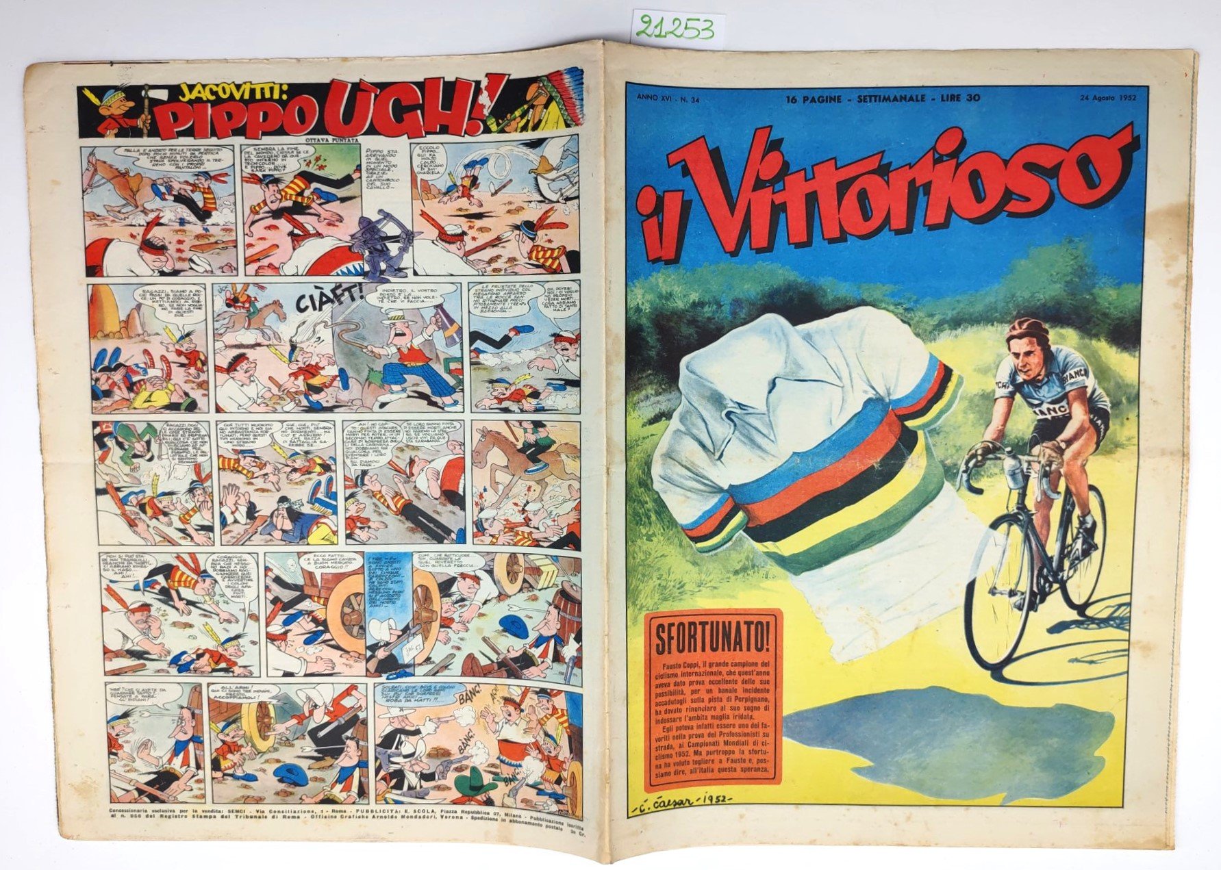 Il vittorioso numero 34 24 agosto 1952 Fausto Coppi
