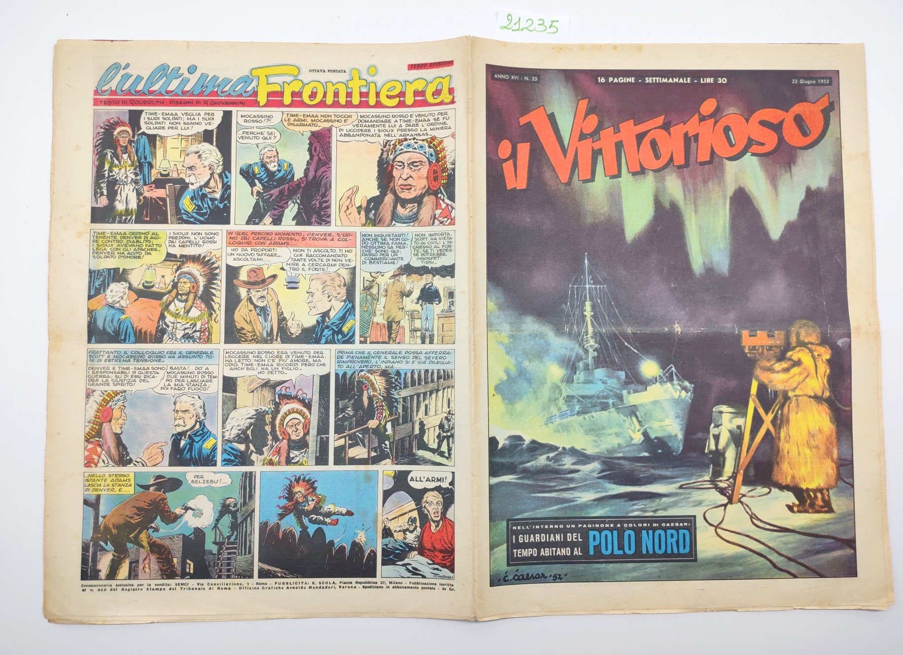 in condizioni accettabili, piccoli strappi alla costola e ai margini dei piatti, una piega trasversale su tutta la rivista, interno in discrete condizioni, margine esterno leggermente brunito, piccoli strappi e ai margini segni di usura, numero pagine 16 dimensione 36 x 26,5