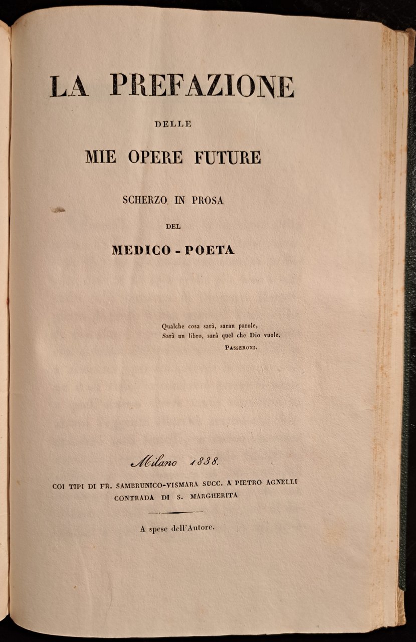 Il Volgo e la Medicina. Discorso popolare del medico-poeta + La Prefazione delle mie opere future. Scherzo in prosa del medico-poeta