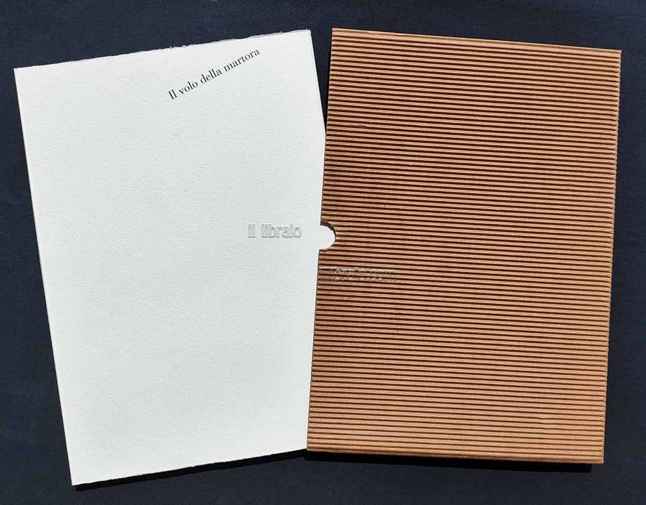 in 4°; pp. 32, 3 tavv. (ill. in bn.); br. con astuccio. *esemplare con dedica dell'autore. Cartellina che raccoglie un racconto tratto dal romanzo di Mauro Corona "Il volo della martora" (2012), prefazione di Claudio Magris e tre acqueforti di Livio Ceschin. Tiratura su carta Graphia delle cartiere di Sicilia in 60 esemplari firmati e numerati a matita dall’artista da 1 a 60 (ns. 13). Stampa a cura della Stamperia d'arte Albicocco, Udine. Legatura in cartoncino con astuccio in cartone ondulato. Questo esemplare è arricchito da un disegno originale a penna con dedica di Mauro Corona. (Il nome del destinatario della dedica è oscurato solo sulla foto per motivi di privacy)