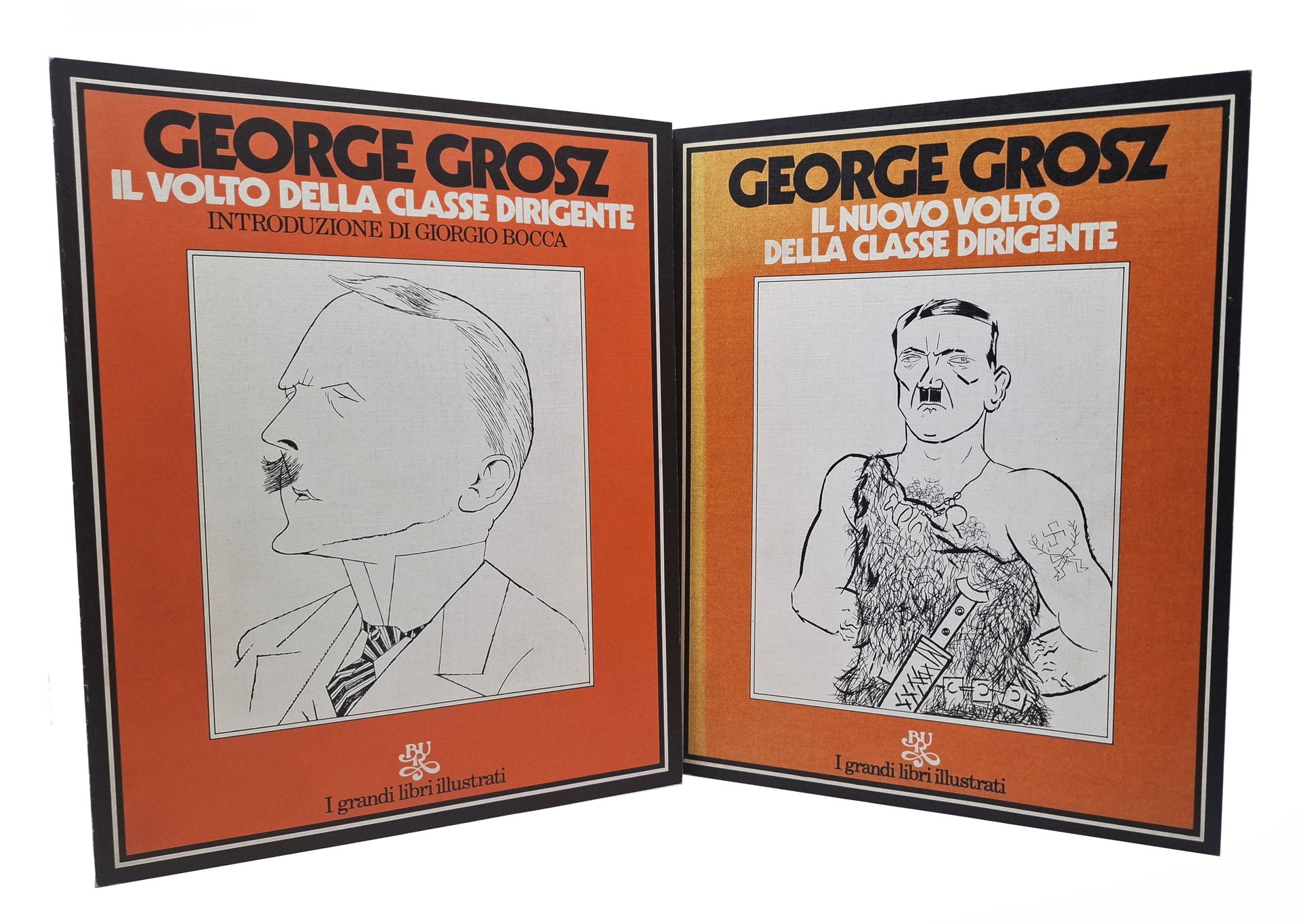 I grandi libri illustrati BUR (Biblioteca Universale Rizzoli). Prime edizioni: giugno 1974 (finito di stampare nel mese di maggio 1974) e ottobre 1975 (finito di stampare nel mese di settembre 1975). Il primo volume 'Il volto della classe dirigente' ha un'Introduzione di Giorgio Bocca e la traduzione dal tedesco è stata realizzata da Carlo Oliva. Pagine: 72; 74 + [6]. . Formato: 23,5 x 29,5 cm circa Stato di conservazione: decisamente buoni. Copertine editoriali flessibili, illustrate. Raccolte di disegni satirici di George Grosz, attraverso i quali l'autore, con il suo tipico stile spigoloso e duro, muove una spietata critica nei confronti dei ceti dirigenti tedeschi. Disegni in bianco e nero.