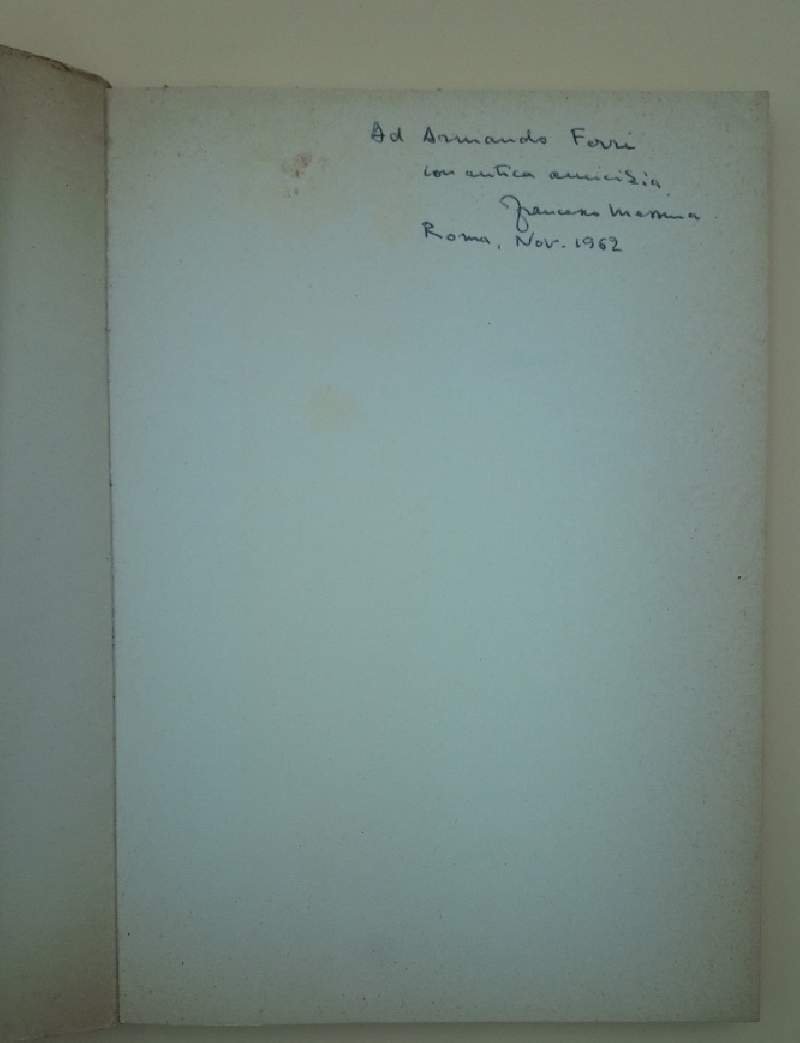 In 8', br. ed. con risv. e sovrac. in acetato, pp. 97, prefazione di Giovanni Papini, copia numerata 305/700, dedica autografa dell'A. in prima bianca; lievi segni d'uso alla cop., fioriture al taglio sup., fioriture al frontespizio e all'ill. in antiporta, margini lievemente bruniti. ***Due to bureaucratic reasons, books dated over 70 years old cannot be immediately exported, please contact us before placing the order.***