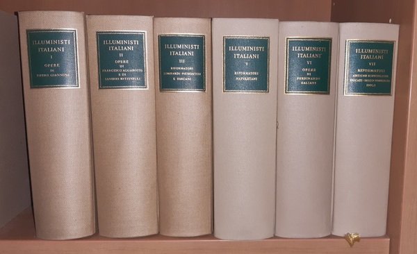 Tomo I, Opere di Pietro Giannone, stampato nel 1971, curato da Sergio Bertelli e Giuseppe Ricuperati; Tomo II, Opere di Francesco Algarotti e di Saverio Bettinelli, stampato nel 1969, curato da Ettore Bonora; Tomo III, Riformatori lombardi piemontesi e toscani, stampato nel 1958, curato da Franco Venturi; Tomo V, Riformatori napoletani, stampato nel 1962, curato da Franco Venturi; Tomo VI, Opere di Ferdinando Galiani, stampato nel 1975, curato da Furio Diaz e Luciano Guerci; Tomo VII, Riformatori delle Antiche Repubbliche, dei Ducati, dello Stato Pontificio e delle Isole, stampato nel 1965, curato da Giuseppe Giarrizzo, Gianfranco Torcellan e Franco Venturi con indice dei nomi, dei periodici citati e degli argomenti trattati nel tomo VII, III e V a cura di Ferdinanda Torcellan; il Tomo IV non risulta essere stato stampato. Collana diretta da Raffaele Mattioli, Pietro Pancrazi, Alfredo Schiaffini.