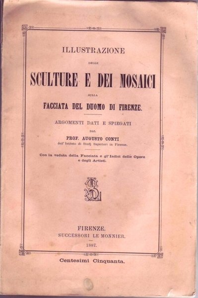 Fascicolo in 8, brossura editoriale, titolo al piatto, tavola d'antiporta con fototipia della facciata di S. Maria del Fiore, frontespizio, 51 pp. Una dettagliata descrizione della facciata dello splendido Duomo, con la citazione degli Artisti che l'hanno resa cos bella. In ottimo stato, poco comune