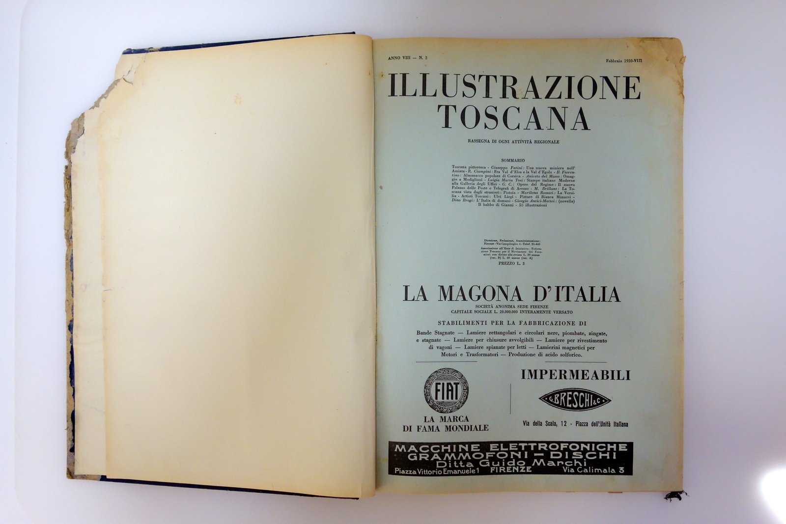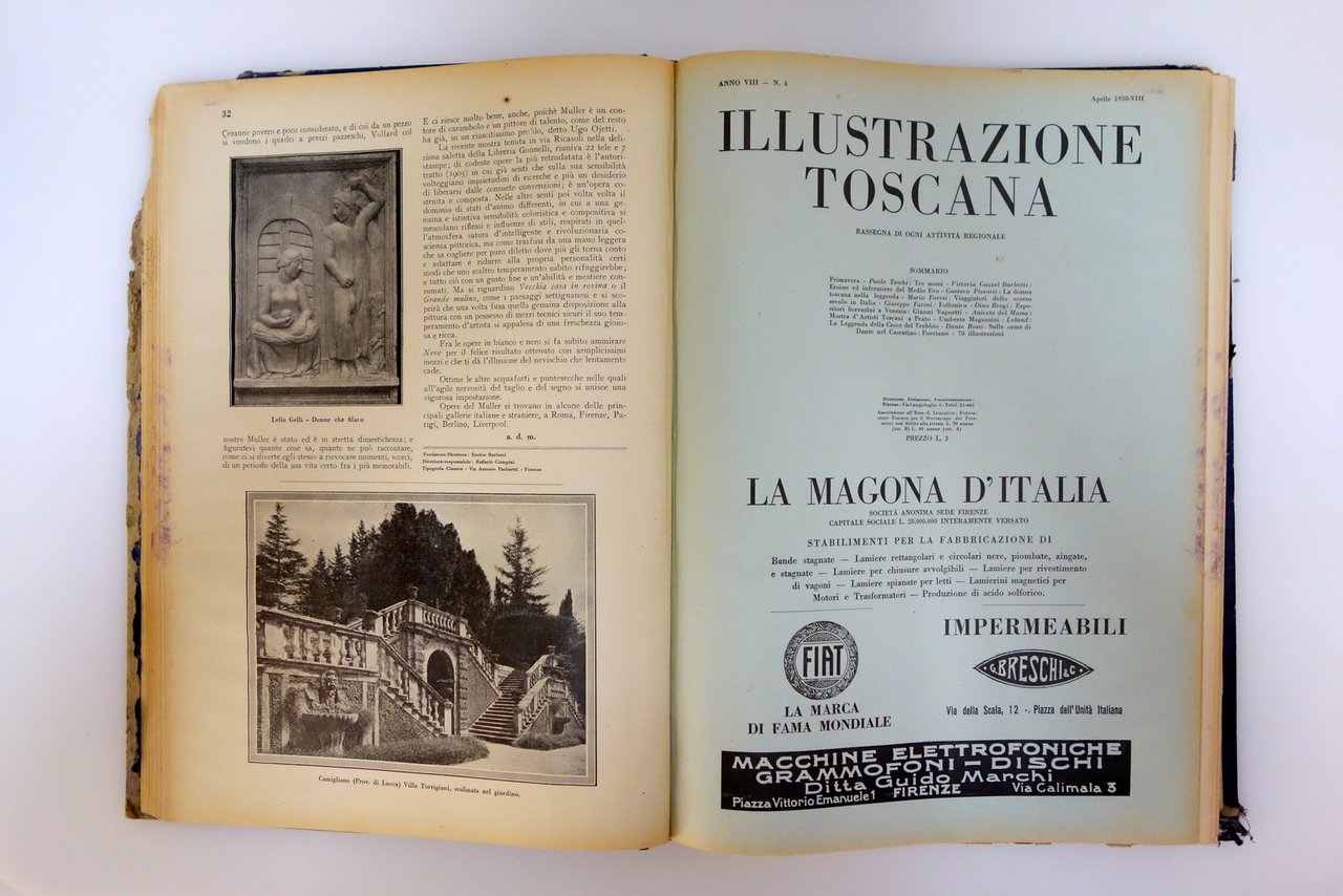 Tip. Classica, Firenze, 1930; cm 34x25,5; pp. circa VI-32 per ciascun numero, tutti con varie ill. in b/n nel t.; qualche numero reca la copertina anteriore originale. 12 numeri di rivista, corrispondenti all'annata completa del 1930, rilegati entro volume d'epoca in cartonato telato con titolo impresso in oro al dorso.