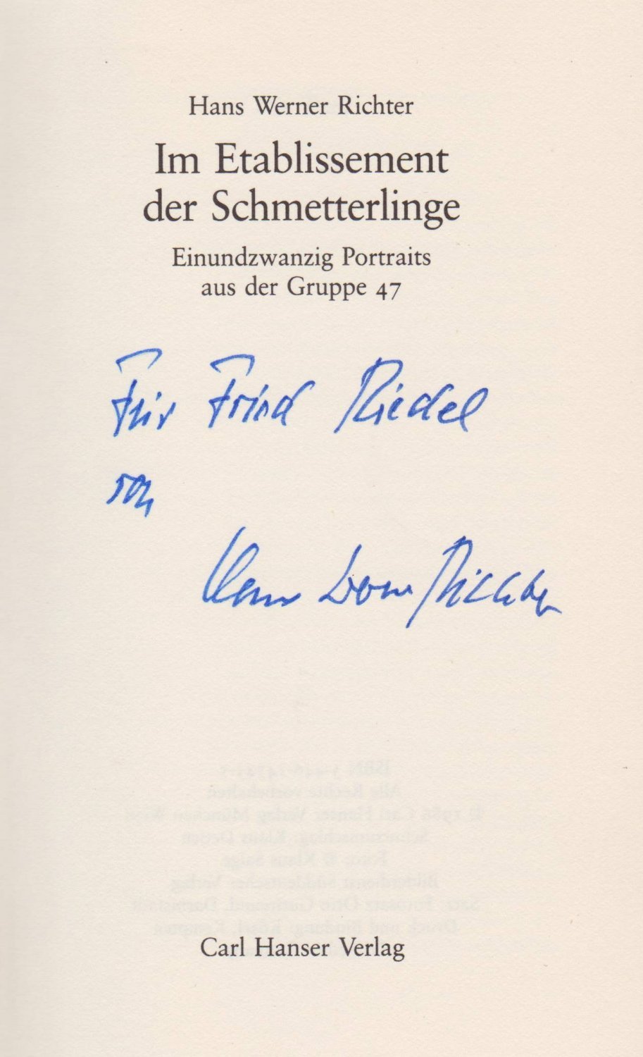 Im Etablissement der Schmetterlinge. Einundzwanzig Portraits aus der Gruppe 47. (Widmung!)