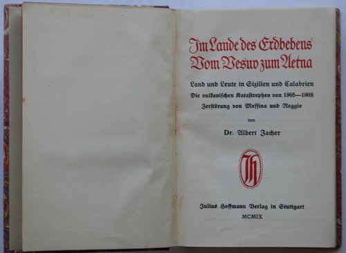 Im Lande des Erdbebens. Vom Vesuv zum Aetna. Land und Leute in Sizilien und Calabrien. Die vulkanischen Katastrophen von 1905-1908. Zerstörung von Messina und Reggio.