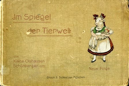In-8° oblungo, ff. 36 impressi al solo recto (un frontespizio a stampa e 35 tavv. in b.n. con le deliziose tavole della Olshausen - Schönberger con caricature raffiguranti animali antropomorfi nelle più varie situazioni ed espressioni, ispirate in parte al grande modello di Grandville. Legatura editoriale t. tela con titolo in rosso e illustrazione policroma con una mucca vestita da balia. Rinfreschi alla legatura. Ex-libris figurato coevo Hedwig Ambühl. Buon esemplare. Edizione originale della seconda serie (su quattro). Käthe Olshausen-Schonberger, nata a Modling, presso Vienna, nel 1881, morta a Graz nel 1968, fu pittrice e illustratrice a Monaco di Baviera (nel 1925 si trasferì a New York, firmandosi con le sole iniziali), prediligendo soprattutto le raffigurazioni di animali. Vollmer, III, p. 516. Thieme / Becker, XXVI, p. 14.