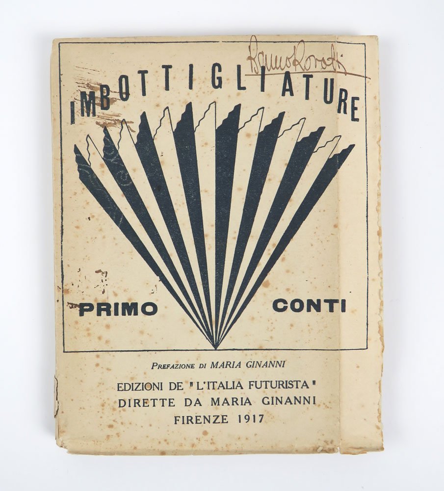 LIBROEdizione originale, opera prima.Più che buon esemplare, che conserva per lo più intatta l’amplissima unghiatura di copertina; foxing ai piatti, firma d’appartenenza coeva al piatto anteriore ribadita alla prima carta interna; per il resto ottimo.Notevole raccolta di poesie, parolibere e prose liriche. Datata in fine «Anno di guerra 1917».Bibl.: Cammarota, Futurismo, 120.2