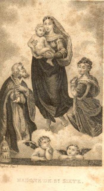 Testo francese. Cm.10,8x7. Pg.480. Legatura coeva in piena pelle. Titoli al dorso e tagli in oro. Abrasioni alla coperta. Con quattro incisioni fuori testo, da quadri di Leonardo e Raffaello. Vistose fioriture. Codice libreria 39748.