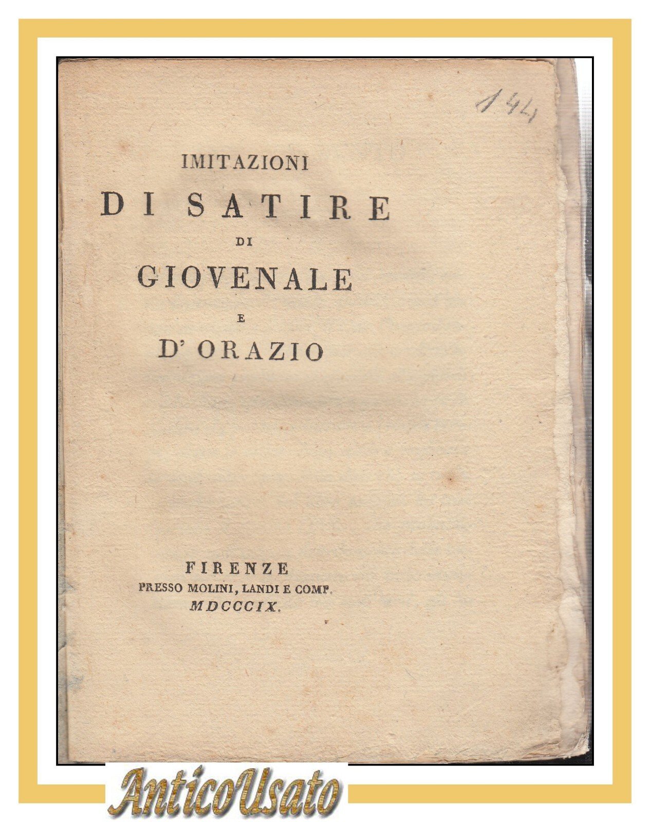 IMITAZIONI DI SATIRE DI GIOVENALE E D'ORAZIO 1809 Libro Antico Molini Landi