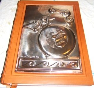 IMPORTANTE E PRESTIGIOSA OPERA RIPRODUCENTE IN PARTE, IL VOLUME CURATO DALL'ANTIQUARIO FRANCESE PIERRE-FRACOISE HUGUES D'HANCARVILLE DAL TITOLO "Antiquit?s etrusques, grecques et romaines tir?s du cabinet de M. Hamilton" EDITO A NAPOLI NEL 1766-67 IN QUATTRO TOMI. COFANETTO IN LEGNO, CON DISEGNO RIPRODUCENTE L'INCISIONE, IN ARGENTO RAMATO DELL'ARTISTA SICILIANO NINO CARUSO, DELLA LEGATURA IN CUOIO CON INCISIONI IN ORO A SECCO. IN CARTA TIZIANO, GARANTITA DUREVOLE PER LA CONSERVAZIONE.LO SBALZO E LE BORCHIE IN ARGENTO RAMATO, SONO OPERA DELL'ARGENTERIA "IL LEONE" DI FIRENZE. LA PELLE PROVENIENTE DA SPALLE DI VITELLO E' LAVORATA CON CONCIA VEGETALE AL SEGO, ED E' TAMPONATA A MANO ALL'ANILINA. DI QUESTO VOLUME SONO STATE REALIZZATE 250 COPIE.ESEMPLARE N? 88.