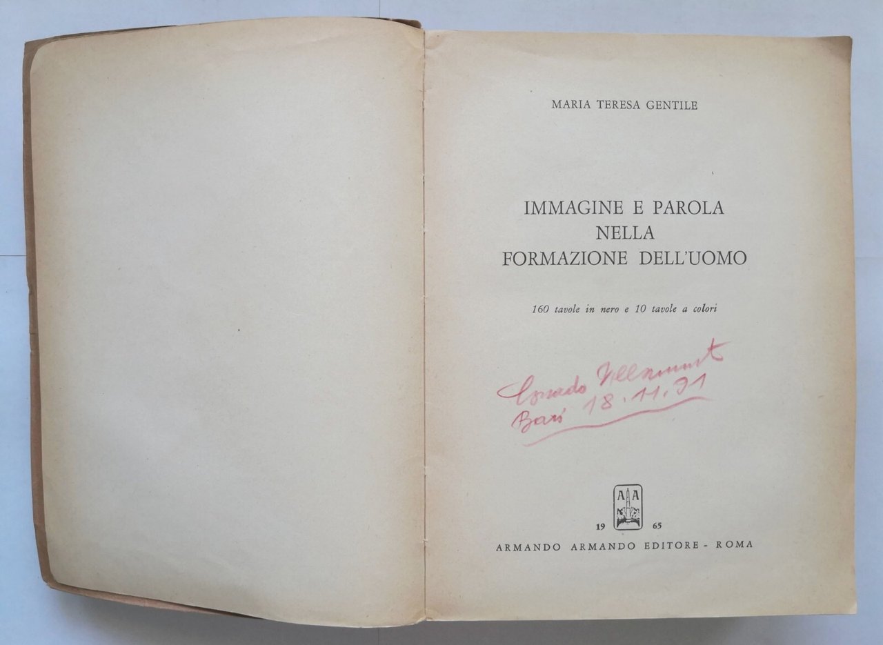 IMMAGINE E PAROLA NELLA FORMAZIONE DELL'UOMO di Maria Gentile 1965 Armando Libro