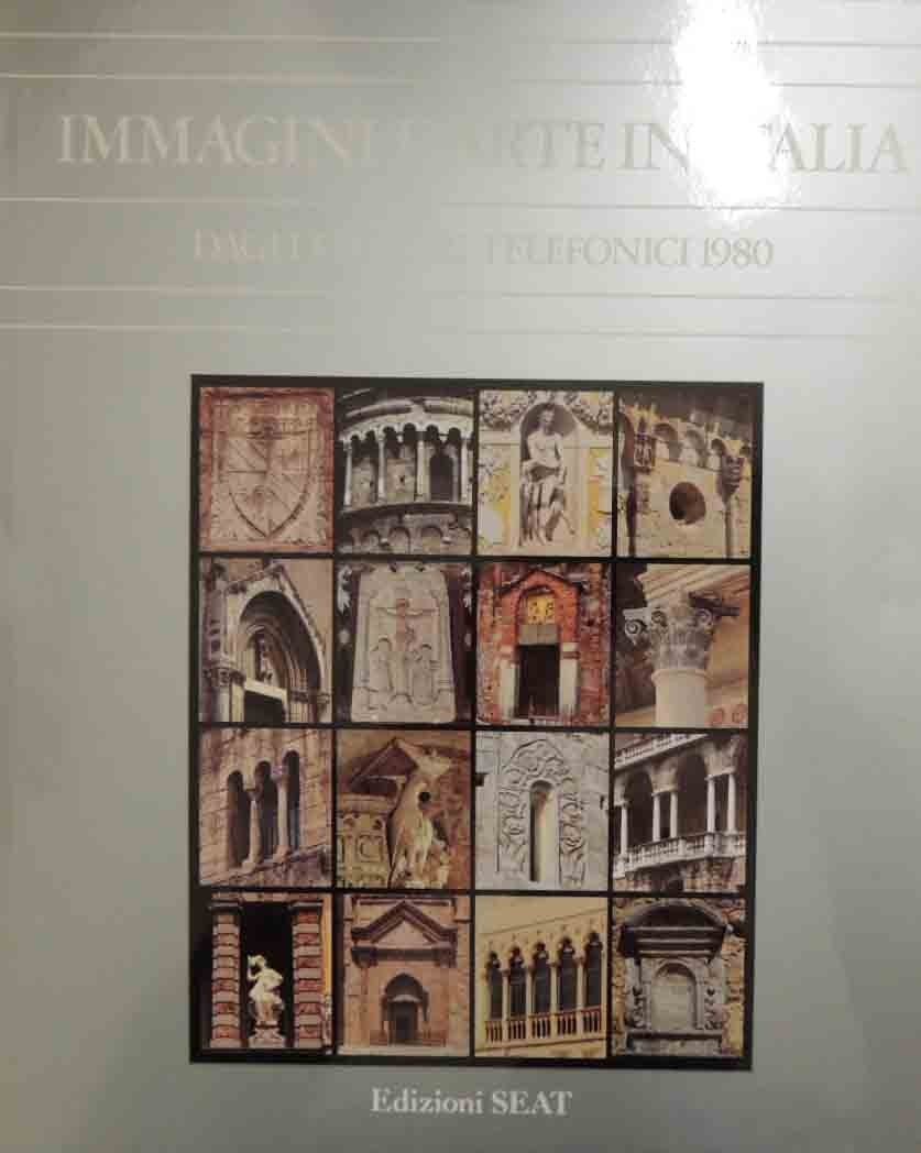 Immagini d’arte in Italia. Dagli elenchi telefonici 1980, Edizioni Seat, Torino 1980, pp. 179, ill. col., cm 29, tela ed. con titoli al dorso, sovraccoperta e custodia in cartoncino ed. muto. Minime ingialliture, per il resto perfetto.