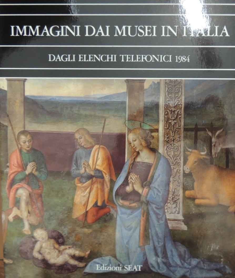 Immagini dai Musei in Italia. Dagli elenchi telefonici 1984, Edizioni Seat, Torino 1984, pp. 169, ill. col., cm 29, tela ed. con titoli al dorso, sovraccoperta e custodia in cartoncino ed. muto. Minime ingialliture, per il resto perfetto.