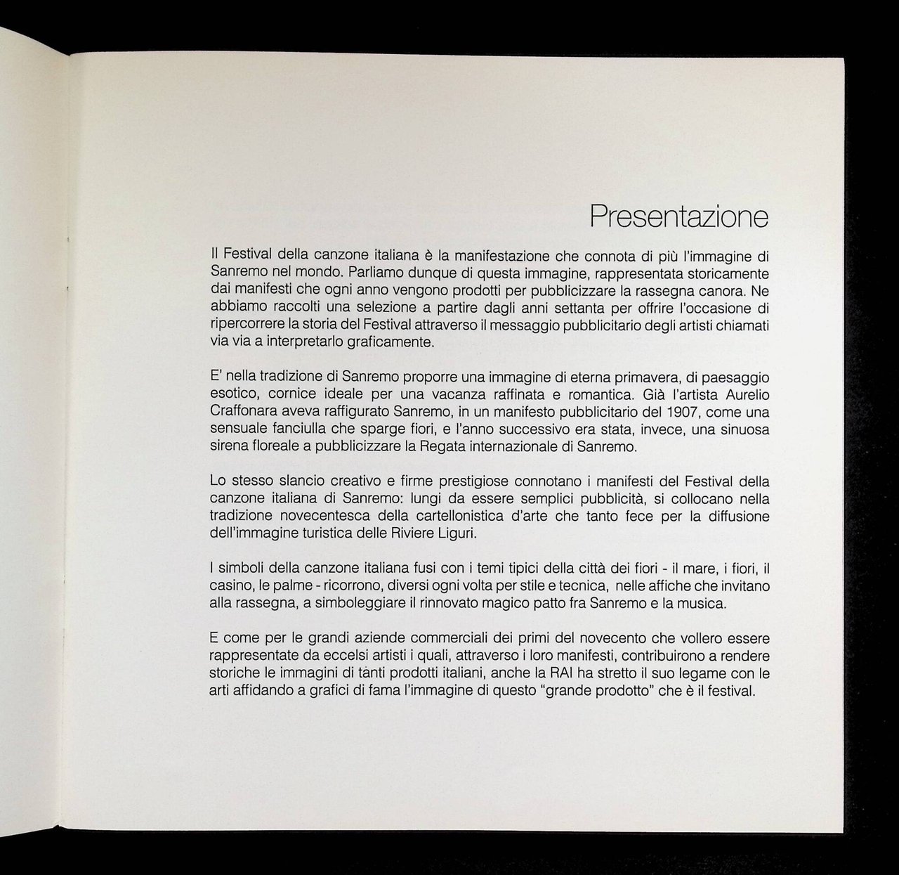 Catalogo riccamente illustrato dei manifesti che hanno fatto la storia del festival di Sanremo. Mostra tenutasi al Palafiori di Sanremo nel 2009 Buone condizioni generali, nulla da segnalare