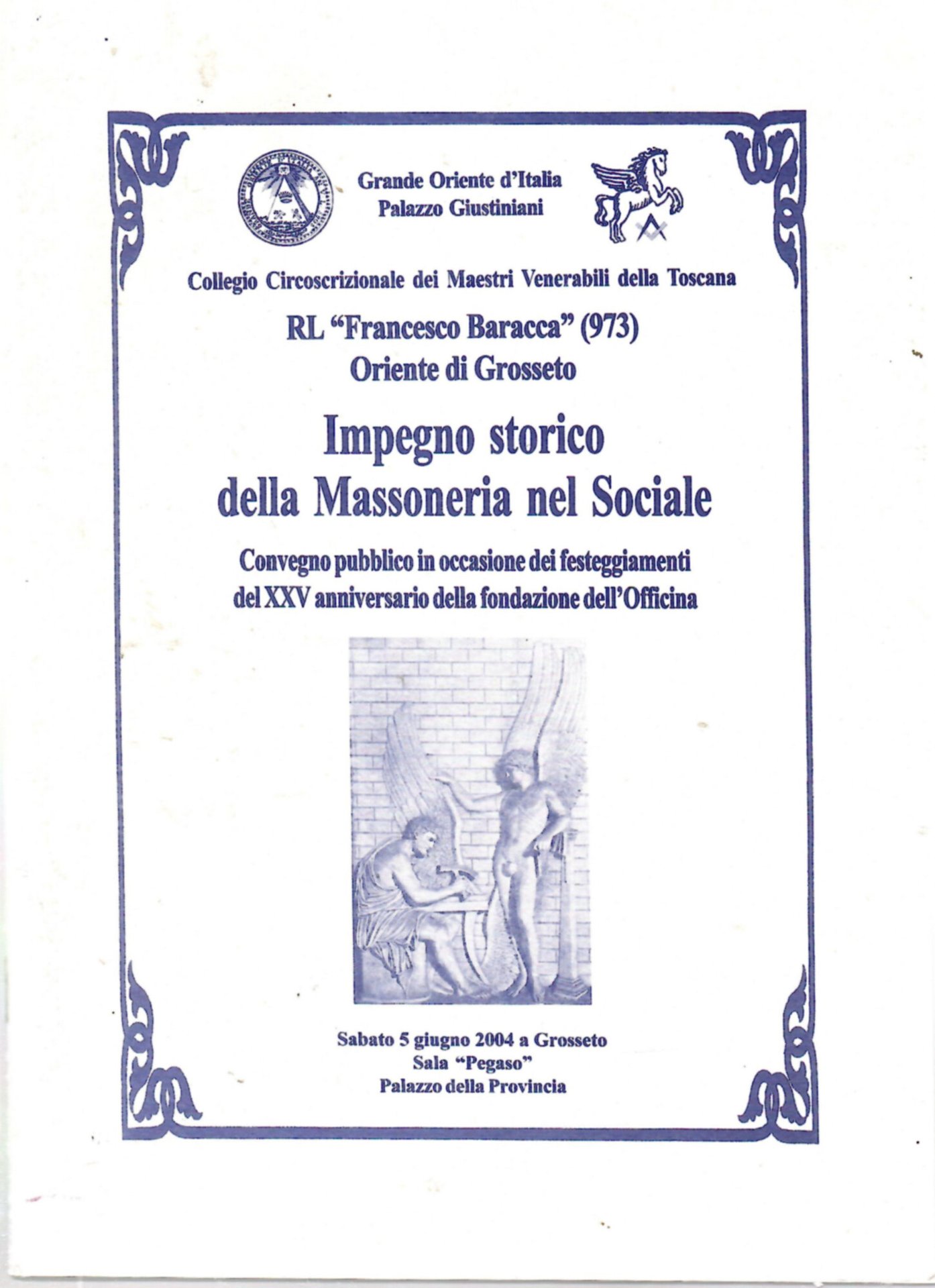 Impegno storico della Massoneria nel Sociale. Convegno pubblico in occasione dei festeggiamenti del XXV anniversario della fondazione dell'Officina