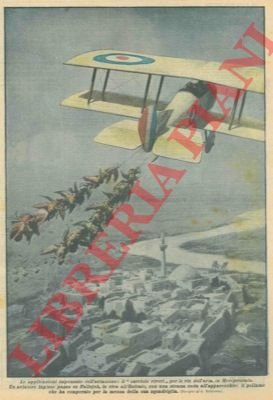 Impensate applicazioni dell'aviazione. Un aviatore inglese passa con una strana coda all'apparecchio: il pollame che ha comperato per la mensa della sua squadriglia.