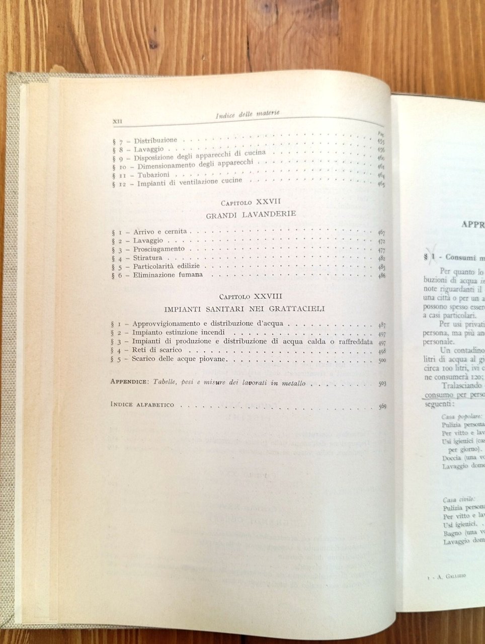 Sesta edizione - Volume rilegato in tela amatoriale, titolo in oro su tassello applicato al dorso, XII-583 pagine con 289 illustrazioni, 65 tabelle e 62 esempi di calcolo; appendice di tabelle indicanti pesi e misure dei lavorati in metallo. Indice delle materie consultabile nelle nostre immagini. Alcune parti sottolineate e annotate a matita, ma nel complesso esemplare ben tenuto e perfettamente fruibile.