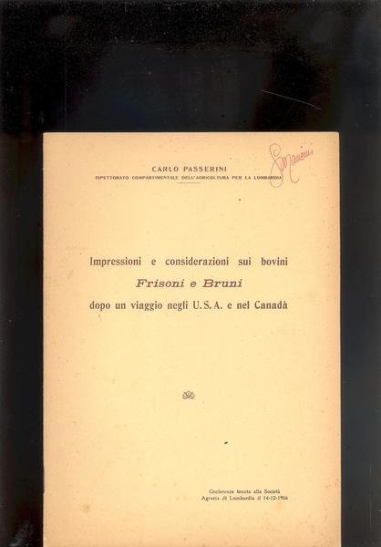 IMPRESSIONI E CONSIDERAZIONI SUI BOVINI FRISONI E BRUNI DOPO UN VIAGGIO NEGLI<BR>U.S.A. E NEL CANADA'.