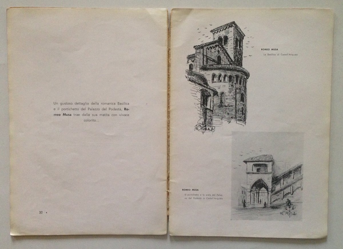 Opuscolo, Impressioni Piacentine" eseguite dai pittori di Milano Ente Provinciale per il Turismo Piacenza 1956, cm 24x17, pp 72, "Impressioni piacentine" eseguite in occasione della lieta giornata dei pittori di Milano a Piacenza, il 19 maggio 1956, con ill. in b/n e a col. n.t. e soprattutto a p.pag., br. ed. ill. Condizioni di conservazione. Esemplare in buono stato con tracce d'uso; brossura editoriale con minime macchiette ai piatti e minime pieghette agli angoli; dorso con qualche strappetto e qualche mancanza alle cuffie; interni buoni, qualche fascicolo leggermente allentato. OPEB.3145 MT "
