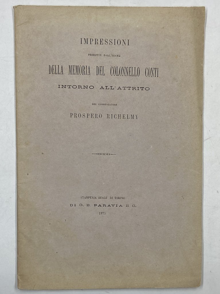 IMPRESSIONI PRODOTTE DALL’ESAME DELLA MEMORIA DEL COLONNELLO CONTI INTORNO ALL’ATTRITO DEL COMMENDATORE PROSPERO RICHELMY.