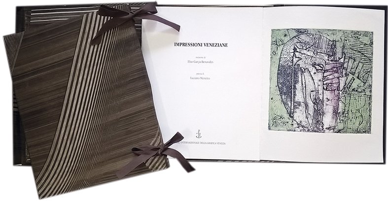 Libro d'artista realizzato nel 2018. L’opera è una incisione sperimentale a stucco su matrice mm 195 x 200 stampata su carta Rosaspina Fabriano. Tiratura 12 esemplari numerati e firmati. Formato libro mm 310 x 235. Il libro, cucito a filza, è raccolto in cartella decorata a mano con la tecnica all’amido.