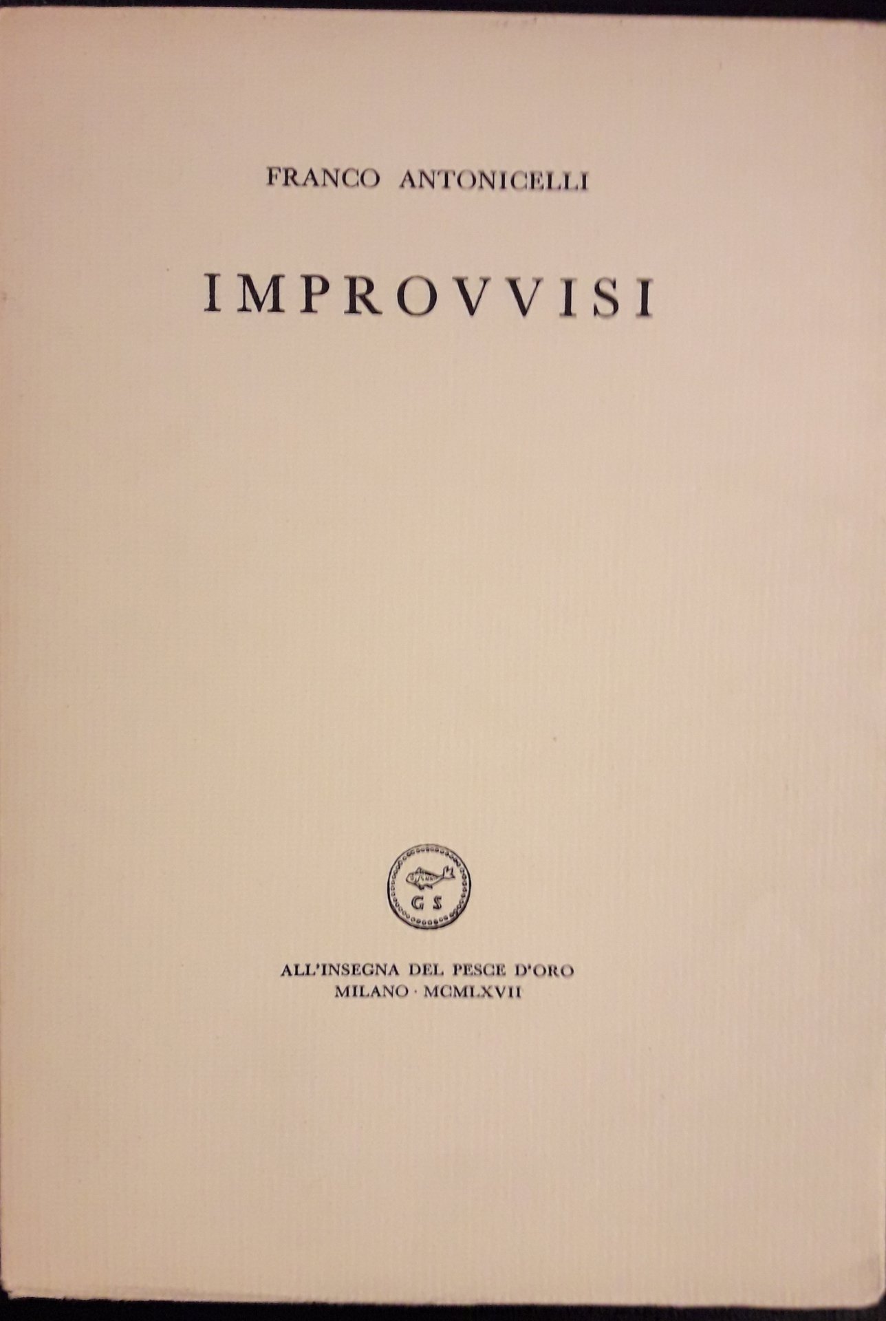 Prima edizione. In 16°, p, 48. Brossura editoriale. Perfetto. Tiratura di 1000 esemplari (ns. 33).
