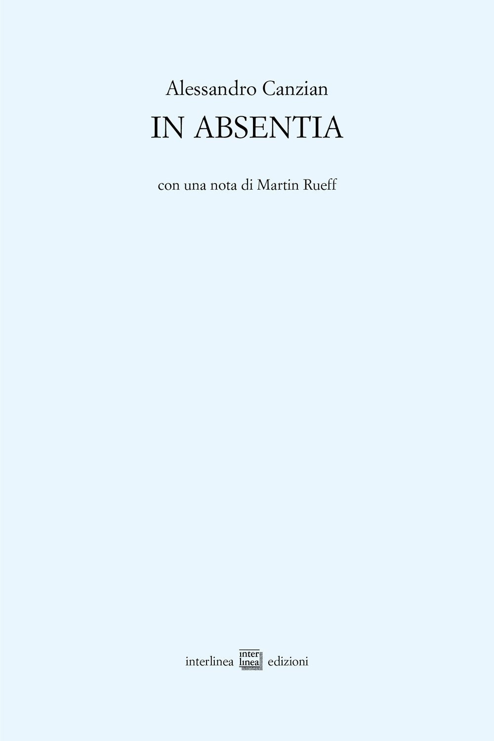 In absentia è una raccolta in cui il titolo funge da chiave di lettura dell'opera «ma senza svelare il mistero»: il poeta, affacciato sul mondo, si assenta. Le sue sono poesie dell'estrema attenzione. «Come i dream-catchers nelle tradizioni degli indiani della costa nordamericana erano piccoli strumenti per afferrare i nostri sogni fugaci, le piccole poesie di Canzian sono come trappole per topi intessute di rimandi interni. Con la leva del linguaggio depositano pezzi di vita, di storia, di sentimenti e di pensieri; arriva il presente e si chiude la trappola. La presenza diventa assenza intensa e corpo fantasmatico» (dalla nota di Martin Rueff).