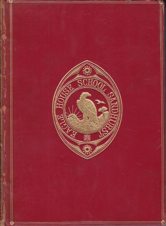 - Roter handgebundener Safian- Ledereinband mit goldgeprägtem reichlich verziertem Rückentitel mit 5 Bünden, goldgeprägtem Supralibros der Eagle House School Sandhurst, Stehkantenvergoldung, dezenter Rahmenvergoldung, marmoriertem Schnitt und Vorsätzen in ähnlicher Marmorierung.