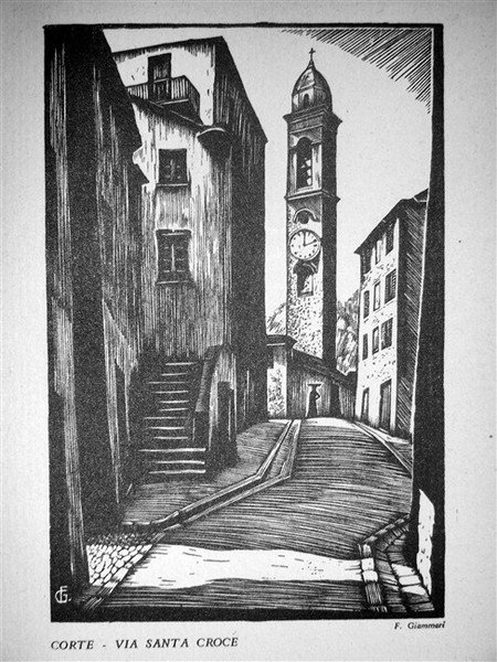 in-8, pp. (4), 152, (4), bross. edit. Con 15 splendide xilogr. a piena pagina firmate da F. Giammari che illustrano paesi corsi. Doppia tavv. in antip. con la topografia dell'isola. [158]