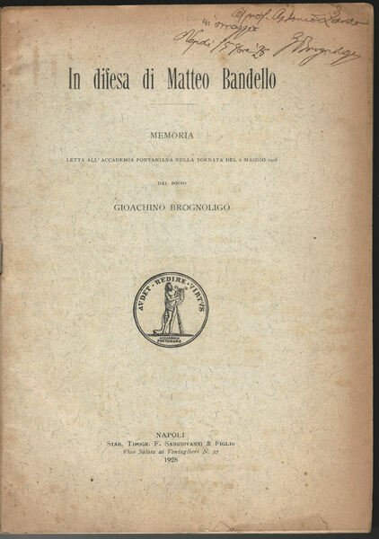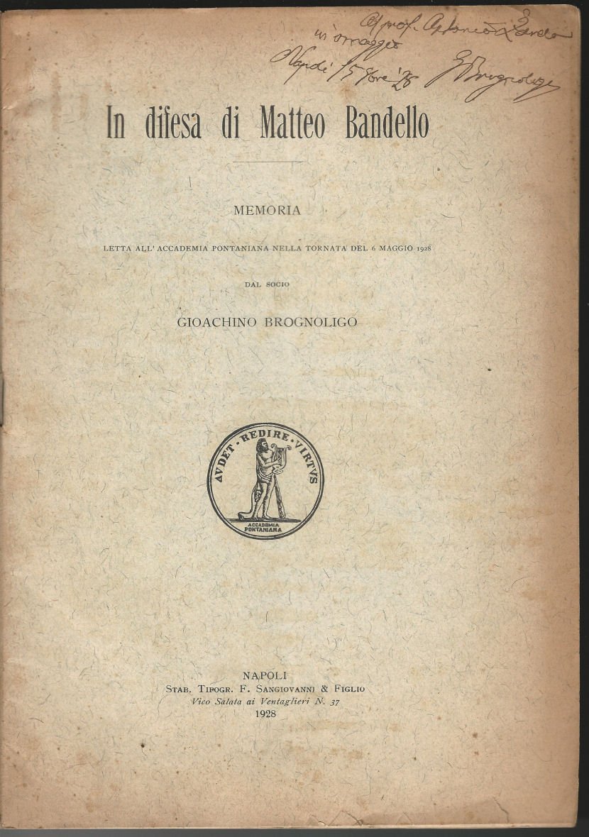 In 8, p. 24, br. orig. - Dedica autogr. dell'a.