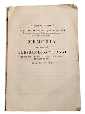 In dimostrazione che gl'Italiani sono stati i primi cultori, ed i promotori insieme della moderna scienza di pubblica economia memoria dell'avvocato Alessandro Mugnai letta all'Accademia labronica di Scienzelettere ed arti li 28. dicembre 1824.