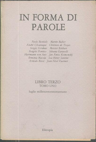 IN FORMA DI PAROLE - LIBRO TERZO - TOMO UNO