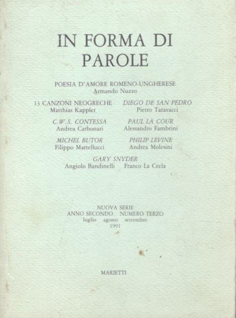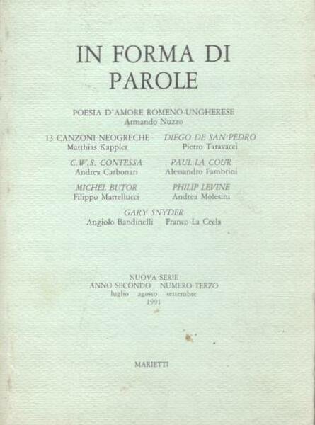 In forma di parole, poesia d'amore romeno-ungherese, nuova serie: anno secondo, numero terzo