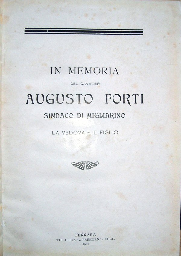 In memoria del Cavalier Augusto Forti, Sindaco di Migliarino. La vedova - Il figlio.