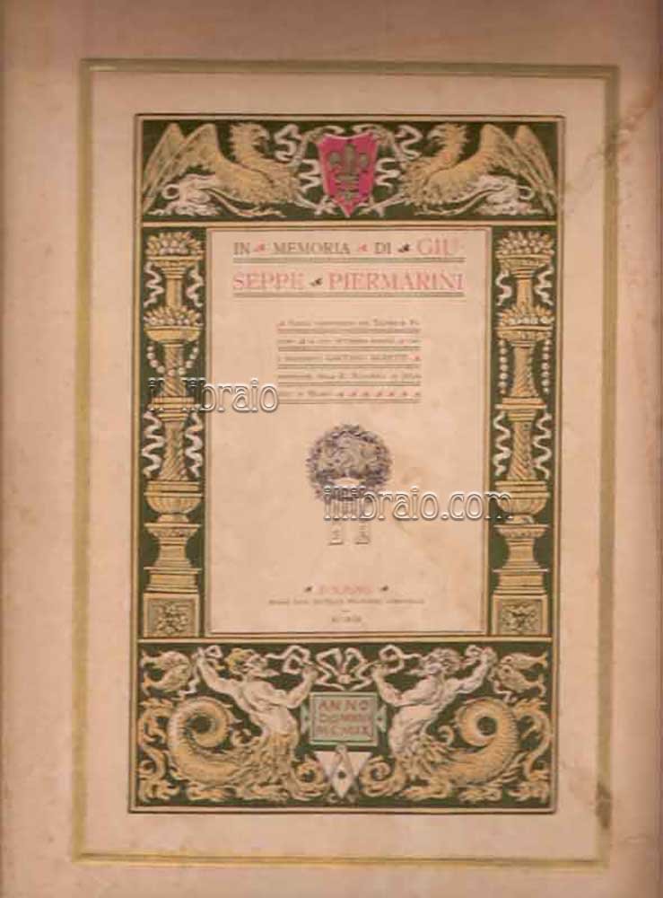 in 4°; pp. 44 + 4 tavv. (ill. in bn.); leg. in mezza tela. Parole pronunziate nel Teatro di Foligno il XVII settembre MCMVIII dall'architetto GAETANO MORETTI professore della R. Accademia di Belle Arti in Milano