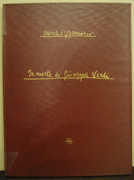 4to (cm. 33,8), (7)10(4) pp. con una ill.ne f.t. (busto di Verdi modellato da V. Gemito). Legatura editoriale in tela con titolo oro sul piatto anteriore. Edizione originale di 300 esemplari (nostro n. 161) in facsimile d’autografo su carta a mano in barbe. Ottimo esemplare. Vecchioni, 29d.