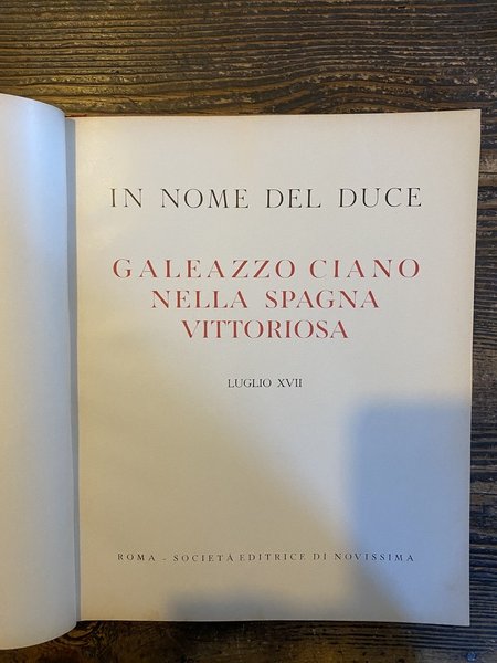 In nome del Duce Galeazzo Ciano nella Spagna vittoriosa Luglio XVII
