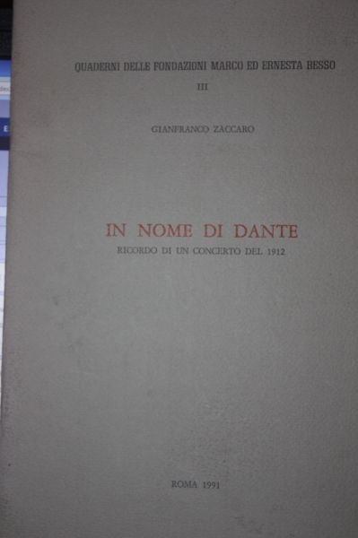 IN NOME DI DANTE. RICORDO DI UN CONCERTO DEL 1912/ Quad. Fondaz. BESSO, 1991